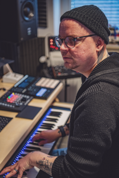 Working as a one man army, Huven has his hands on every stage of the songwriting/composing process, a multi-instrumentalist (he plays keyboards, guitar, drums and bass) who combines his years of experiences as a touring live and studio musician with an innate sense for experimental electronic/orchestral music and beautiful, hunting melodies. He’s as adept working with an orchestra as he is with a wall of modular synths, playing a bass, guitar or building his own physical and digital instruments. But one of his greatest strength is his ability to shape emotional connections through sound and noises.